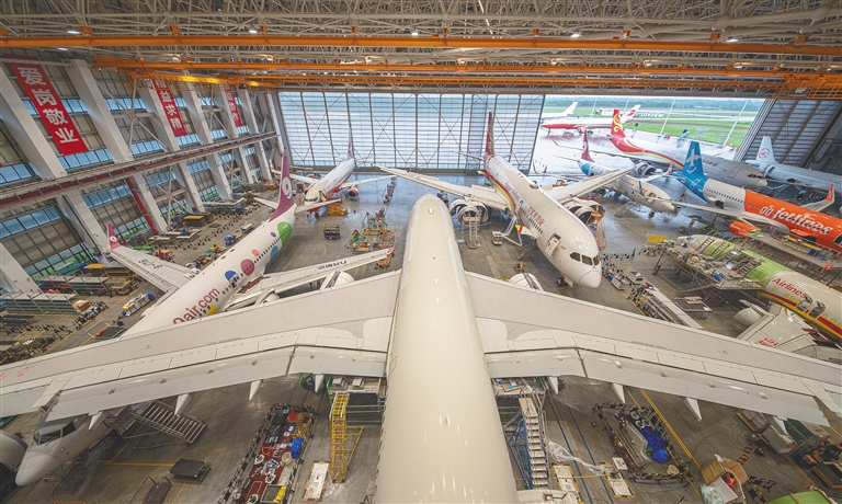 在這里,我聽到了首單進境飛機維修時令人興奮的創業故事,看到了停機坪上多國航司飛機“排隊”入庫的壯觀景象,更從扎堆而來的境外客戶代表豎起的大拇指里,讀懂了“放心之地”背后的分量和引力。