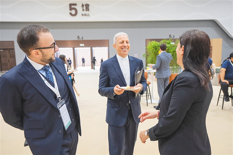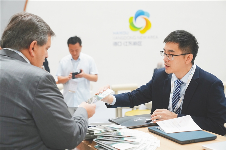 與會嘉賓在展示區了解海口江東新區發展情況。