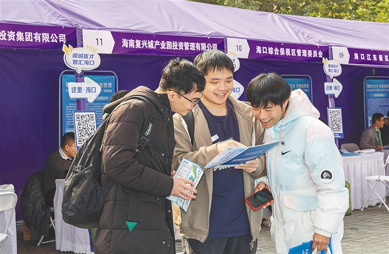 今年10月,由海南省委、省政府主辦的“封關拓新局·四城同辦”校招活動(北京站)在清華大學舉辦,求職者翻看招聘崗位信息。海南日報全媒體記者 陳若龍 攝