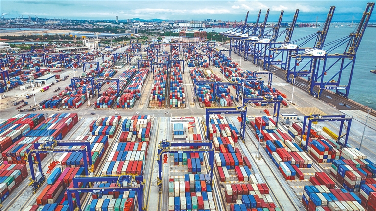 繁忙的洋浦國(guó)際集裝箱碼頭。海南日?qǐng)?bào)全媒體記者 張茂 攝