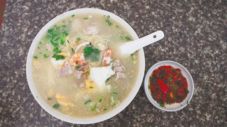每天一早,他們預訂的生蠔等海鮮就會從海口運來,這些海鮮加入粉湯中,又為粉湯添了一份甜鮮。 隨著時代發展,到了吳志強的兒子吳坤這一代,這家老店也上線了外賣業務,讓老城味道更便捷地觸達更多居民。