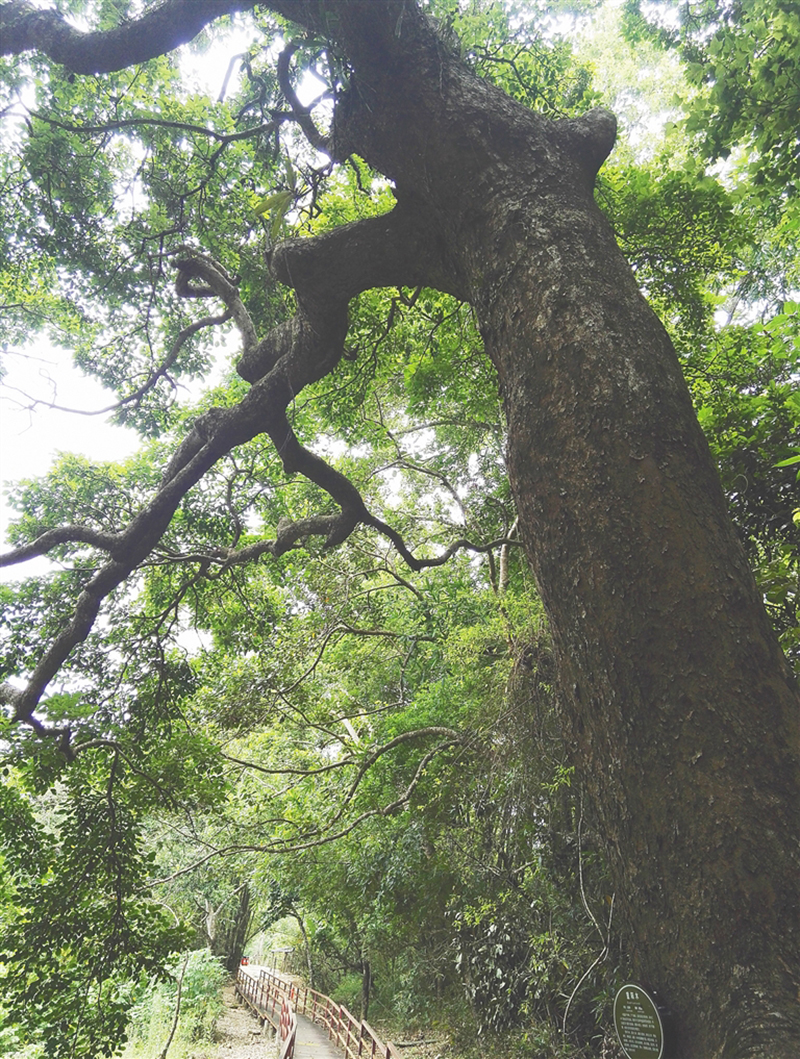 五指山熱帶雨林棧道上的一株參天重陽木。陳耿 攝