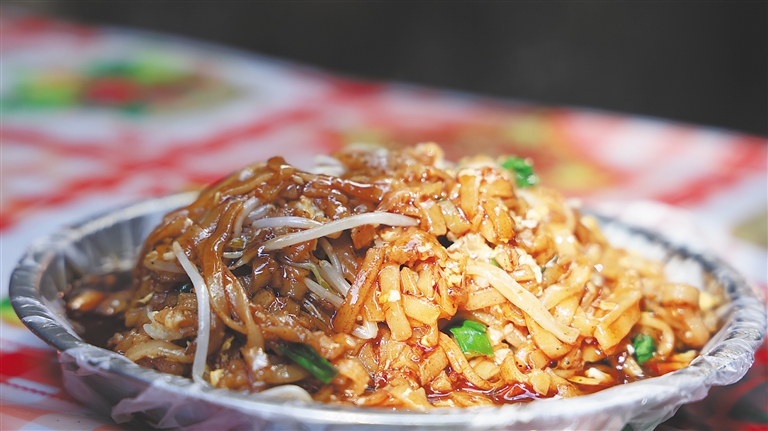 “剛開(kāi)始時(shí)炒粉就7毛錢一碗,里面只有粉,沒(méi)有雞蛋,也沒(méi)有肉。”蔡志興說(shuō),慢慢地,才有了雞蛋,后來(lái)又因?yàn)楸镜厝藧?ài)吃豬肘,所以加了豬肘等豬肉,“本來(lái)本地吃炒粉沒(méi)有加煎蛋的習(xí)慣,后來(lái)根據(jù)顧客的要求才慢慢增加的。”