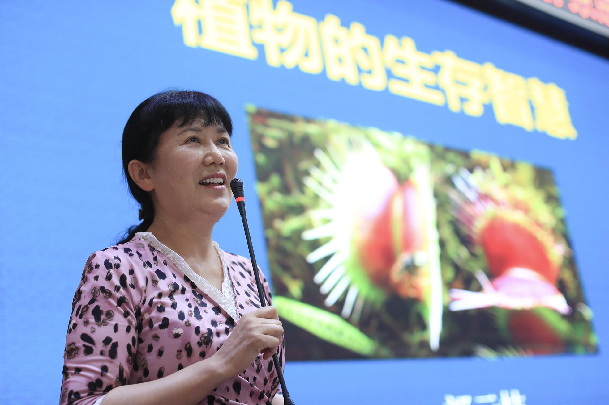 “植物最大的敵人是誰(shuí)?其實(shí)是它自己,同一種植物會(huì)爭(zhēng)陽(yáng)光、水分,很多植物為了生存,不得不到很遠(yuǎn)的地方開疆?dāng)U土,但它們不會(huì)行走怎么辦?”中國(guó)作家協(xié)會(huì)會(huì)員、中國(guó)科普作家協(xié)會(huì)教育委員會(huì)委員祁云枝,帶同學(xué)們當(dāng)了回“小偵探”,發(fā)現(xiàn)了植物的生存秘密。例如,植物為克服不會(huì)走動(dòng)的缺陷,演化出形形色色的生存智慧與特技——蒲公英會(huì)使用降落傘、野燕麥會(huì)爬行、蒼耳會(huì)蹭車、車前草用種子黏人、金魚草會(huì)用“二唇花冠囊”挑選紅娘、花柱草能夠以弱小之軀暴打“媒婆”。
