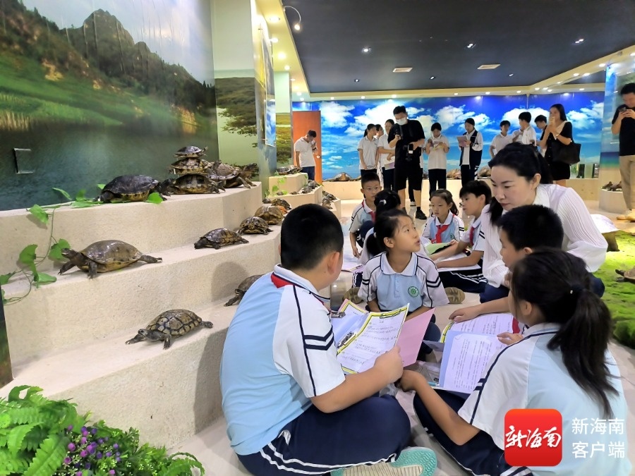 在龜鱉館,小學生們仰著腦袋好奇發(fā)問:“巴西龜能在大海生活嗎?”;初中生們則圍繞玳瑁標本,熱烈探討著守護海洋生靈的可行方案;高中生們的視角投向更廣闊的天地,為海南熱帶雨林國家公園霸王嶺片區(qū)的海南長臂猿保護建言獻策;大學生們則在生物多樣性展廳開展高階研討,思考著萬物共生的可持續(xù)發(fā)展未來。