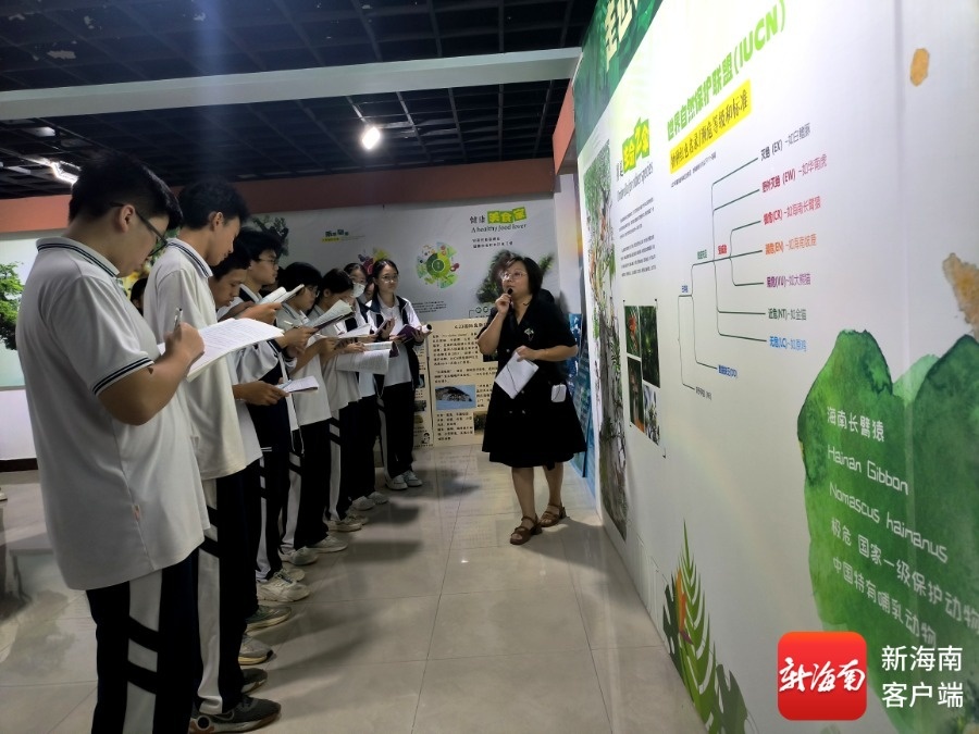 海南師范大學附屬中學學生在館內(nèi)了解長臂猿相關(guān)知識。
