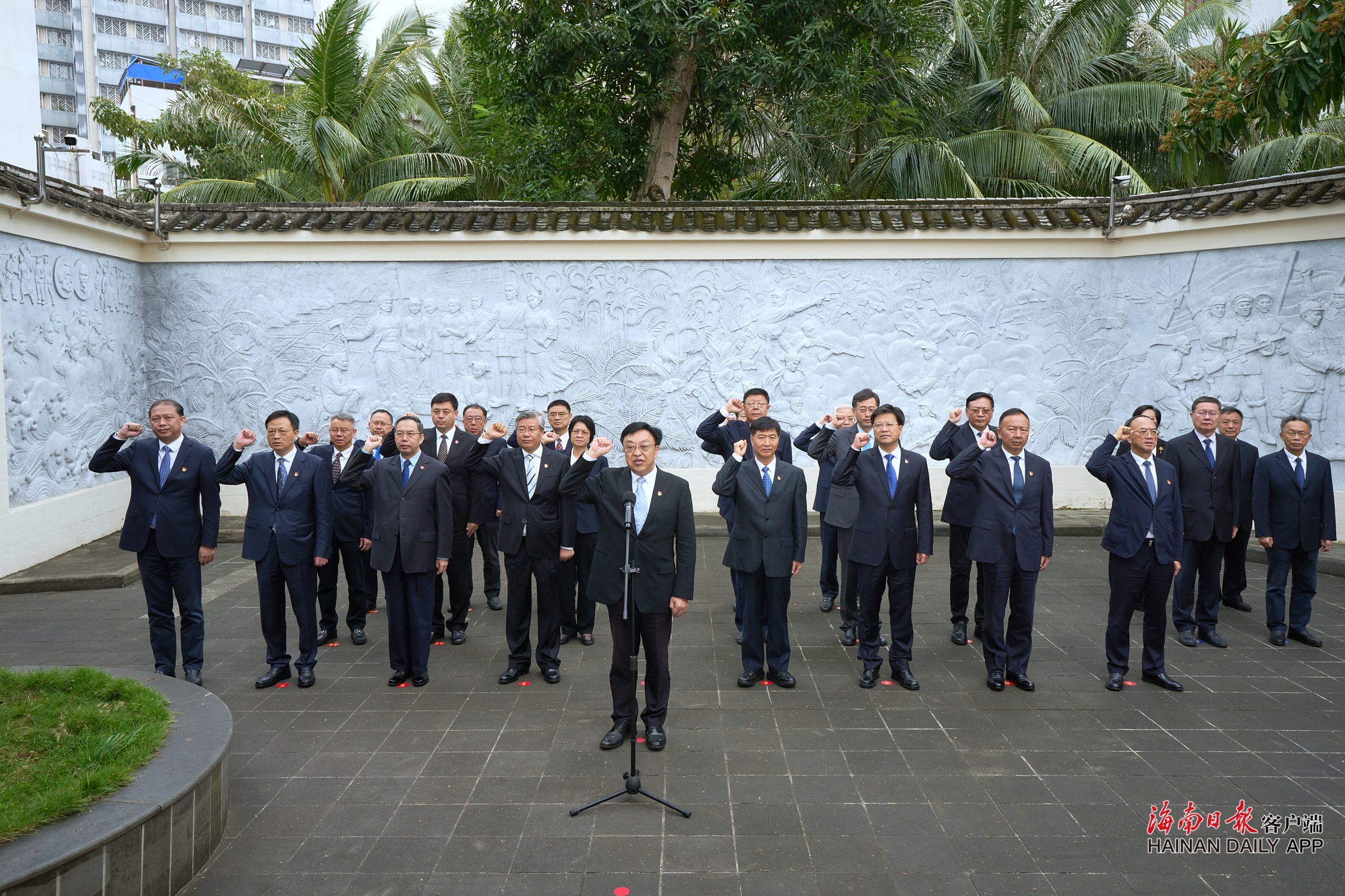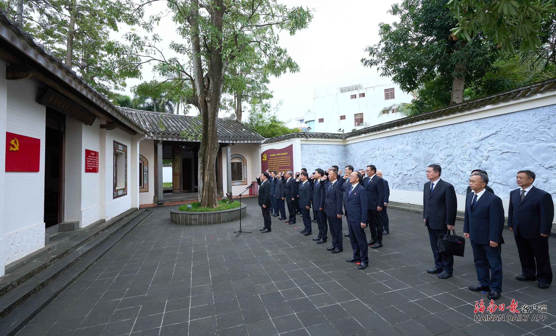 清晨的海口市龍華區(qū)解放西路竹林里131號靜謐而莊重。這座鬧市中竹林掩映的老宅,是瓊崖革命啟航之地。省委書記馮飛,省委副書記、省長劉小明,省政協(xié)主席李榮燦等現(xiàn)職省級領(lǐng)導懷著無比崇敬的心情走進這里,以參觀史料展陳、聽取主題報告等方式,回顧瓊崖革命歷程,汲取歷史經(jīng)驗和精神動力。展館內(nèi)一張張圖片、一份份檔案文件、一件件歷史實物,靜靜訴說著瓊崖革命先輩為了崇高理想揮灑熱血、投身偉業(yè)的英雄壯舉與不朽功績。參觀學習結(jié)束后,馮飛帶領(lǐng)全體同志面對鮮紅的黨旗莊嚴宣誓。