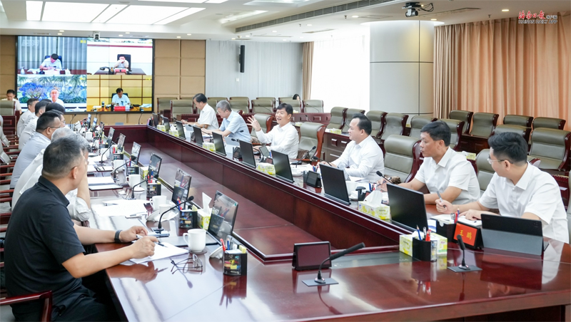 省領(lǐng)導(dǎo)李鋒、鄒廣,省政府秘書長符宣朝參加會議。(海南日報全媒體記者 陳蔚林 攝影 武威)