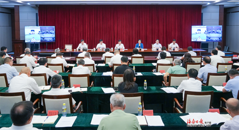 省領(lǐng)導(dǎo)謝京、蔡朝暉、李鋒、趙峰,省政府秘書長符宣朝參加會議。(海南日報全媒體記者 陳蔚林 攝影記者 武威)