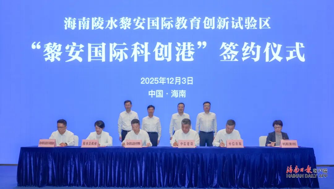 12月3日,海南陵水黎安國際教育創新試驗區“黎安國際科創港”教科產城融合合作協議在三亞市簽署。省長劉小明,中信集團總經理張文武見證簽約。
