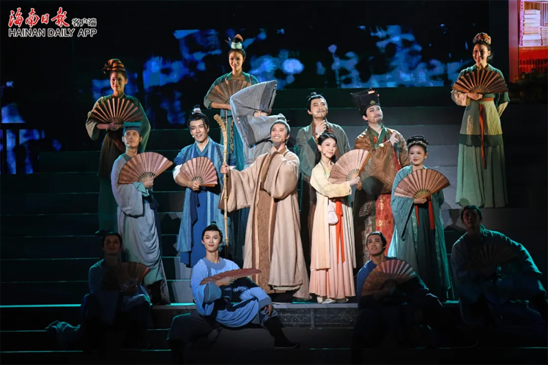 作為開幕演出的音樂劇《心安東坡》,與《不老東坡》《男神東坡》共同構成海南東坡文藝精品“三部曲”。該劇以蘇軾在海南的生活經歷為創作藍本,舞臺設計擷取海南自然景觀與人文元素,生動再現了蘇軾在海南興辦學堂、傳播文化、與民同樂的歷史過往。該劇首演后將于12月18日至19日登陸海南省歌舞劇院,2026年計劃赴北京、上海等城市開展全國巡演,以東坡文化為紐帶,推動海南文旅融合發展。(海南日報全媒體記者 李磊 攝影 封爍)