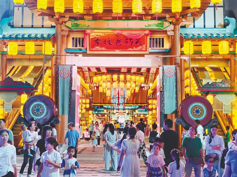 近日,夜晚的海口東坡老碼頭人頭攢動。海南日報全媒體見習記者 陳明艷 攝