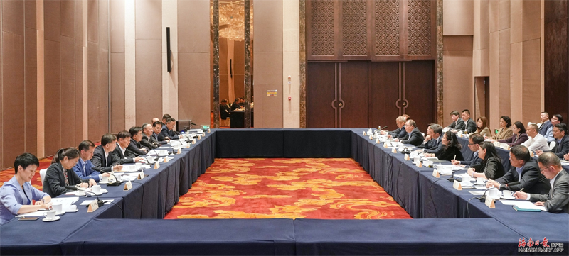 馮飛代表海南省委、省政府對外資金融機構在支持海南自由貿易港建設中發揮的積極作用表示感謝。歡迎外資金融機構充分發揮全球網絡和專業優勢,做好金融“五篇大文章”,助力海南更好融入“一帶一路”建設和全球產業鏈供應鏈體系,實現金融與實體經濟良性循環。劉小明介紹了海南自由貿易港建設進展、金融業發展成效以及封關運作后的政策變化情況。