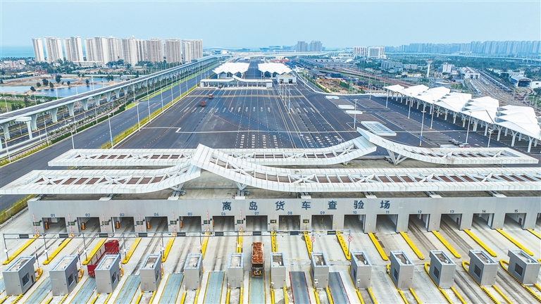 11月18日,海南自貿港封關運作合成演練和7×24小時熱運行正式啟動。圖為多場景合成演練在海口新海港和南港“二線口岸”(貨運)集中查驗場舉行。海南日報全媒體記者 張茂 攝