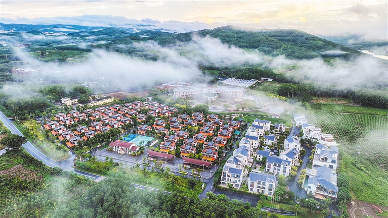 近日,航拍白沙黎族自治縣牙叉鎮(zhèn)新高峰村優(yōu)美風(fēng)光。