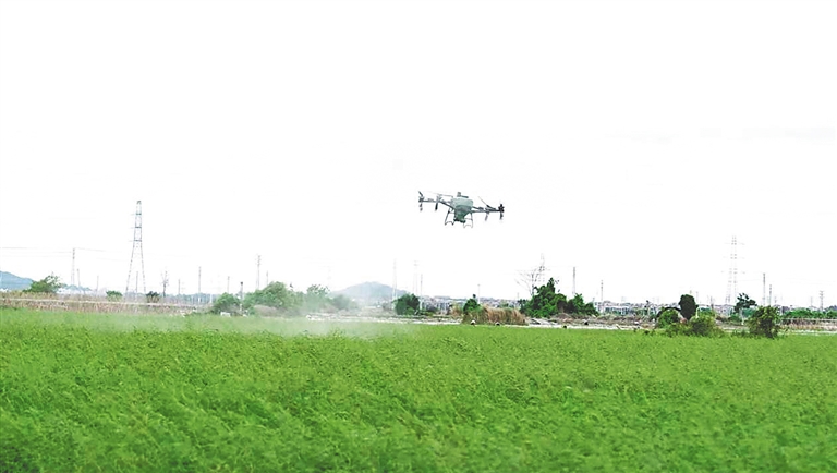 省南繁管理局工作人員使用無人機進行田間管理。 省南繁管理局供圖