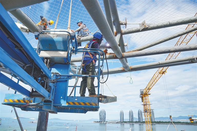 位于三亞的中國海南國際文物藝術品交易中心項目和海南國際文化交流中心項目現場,工人們在忙碌施工。海南日報全媒體記者 王程龍 攝
